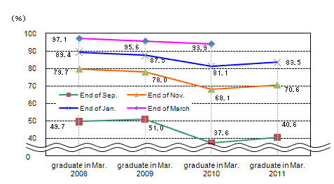 Survey on Situation of Preliminary Job Offers for New Graduate in Mar.2011 (University, etc.) (February 1, 2011)