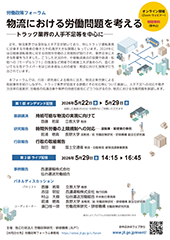 本フォーラムでは、行政・研究者による報告に加え、物流企業労使による取組事例を紹介しながら、トラック業界が直面する課題とその対応策について議論し、人手不足への対応や働き方改革の進展が、労働者の処遇改善や業界の持続可能性にどうつながるのか、物流における労働問題を展望します。