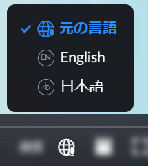 プレイヤー画面右下の「言語」アイコンで、言語の切り替えが可能です。切り替えにより通訳音声をお聞きいただけます。(基本的には「元の言語」のままお使いになり、必要に応じて言語の切り替えをご利用ください)