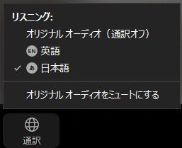 *オリジナル音声はかすかに聞こえる程度の音量です。 - 「日本語」を選択すると、日本語音声が聞こえます。