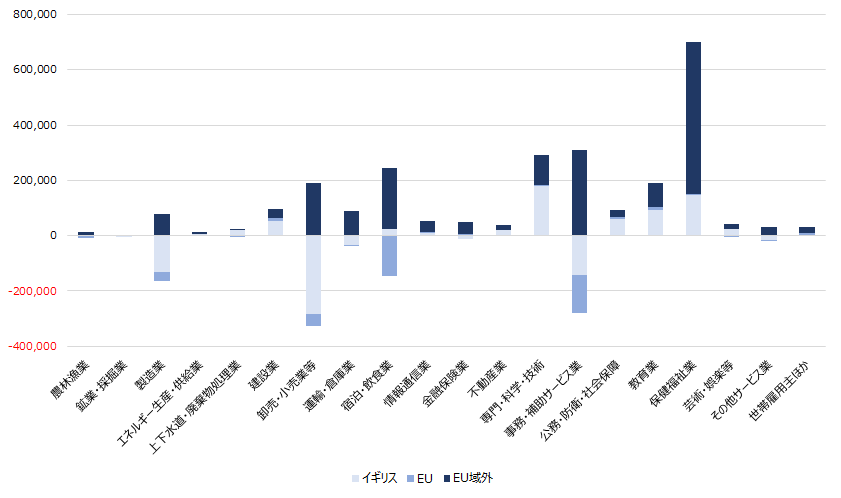 EU離脱後の急激な外国人流入数の拡大を受けて、政府が実施した各種の流入削減策により、就学や就労を目的とする入国者が急速に減少している。この間のEU域外からの労働者の顕著な増加や、EUからの労働者の減少により、業種ごとの労働者の出身別の構成や賃金水準に変化が生じていると見られる。