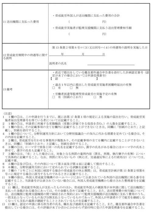 ホ 監理型育成就労の申込みの取次ぎ又は外国における監理型育成就労の準備に関し監理型育成就労の対象となろうとする外国人が取次送出機関又は外国の準備機関に支払った費用の額及び内訳並びに監理型育成就労の対象となろうとする外国人がこれを十分に理解したことを明らかにする書類