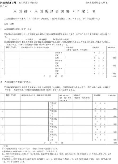 2 育成就労外国人が登録日本語教員が実施する授業(育成就労外国人が日本語の能力に係る育成就労の目標を達成するために行うものであって、同時に授業を行う生徒の数が二十人以下であるものであることその他日本語教育の適正かつ確実な実施のために適当と認められる方法により行うものに限る。)により履修した授業科目(入国後講習及び過去六月以内において当該授業により履修した授業科目を含む。)が百時間以上である場合は、当分の間、育成就労計画は、第十三条第二項第八号の規定に適合するものとみなす。