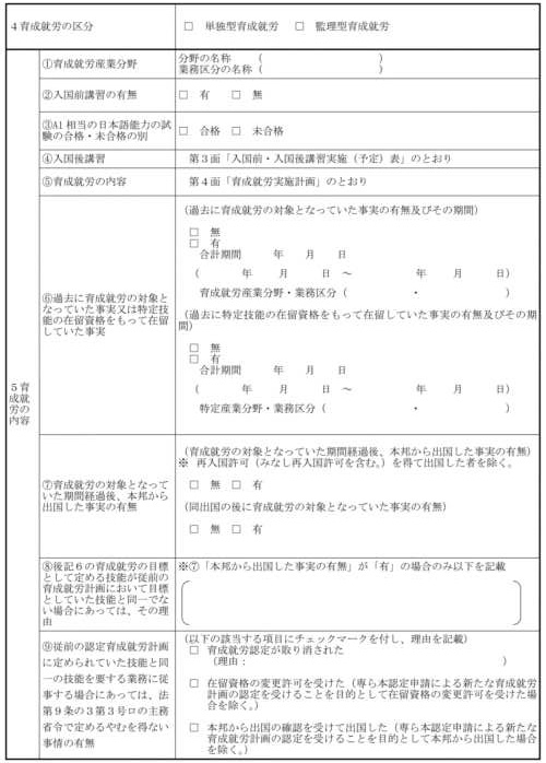 二 育成就労の対象となろうとする外国人に育成就労を行わせることに係る申請者の誓約書