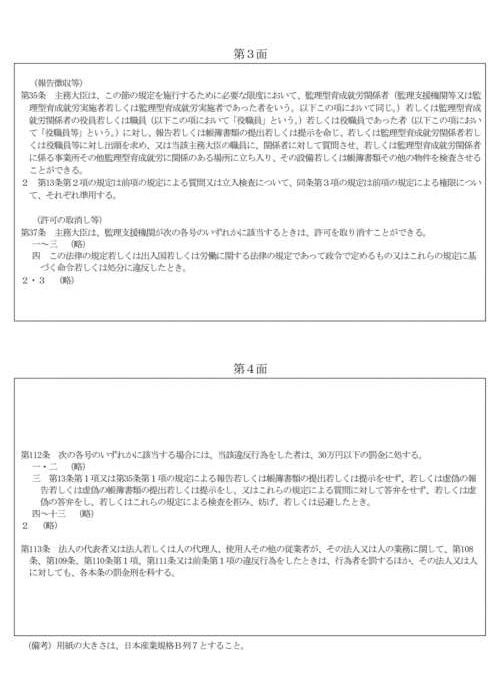 外国人の育成就労の適正な実施及び育成就労外国人の保護に関する法律施行規則(法務・厚生労働四)