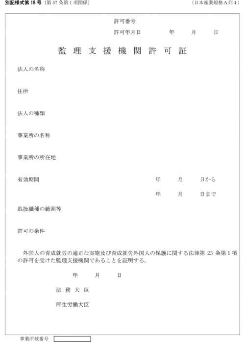 イ 監理支援機関の許可番号、監理支援責任者(法第四十条第一項に規定する監理支援責任者をいう。以下同じ。)の氏名、当該監理支援責任者を設置する事業所の名称及び所在地並びに育成就労計画の作成に関する指導を担当する者の氏名