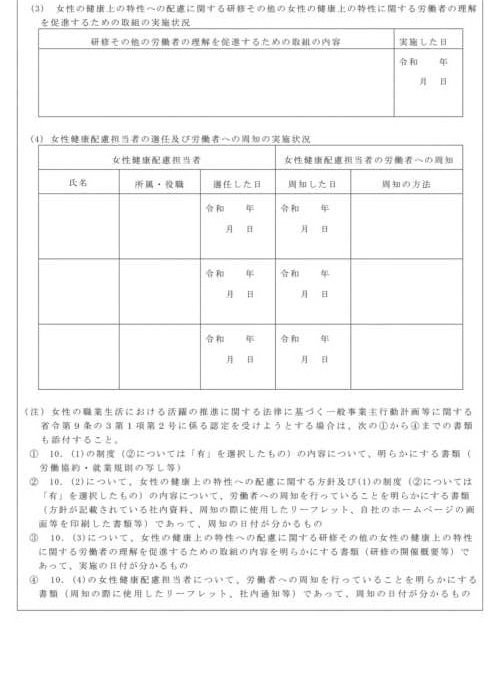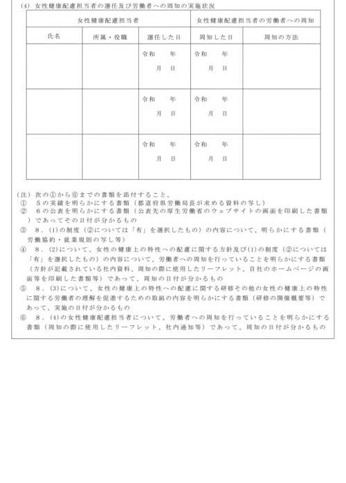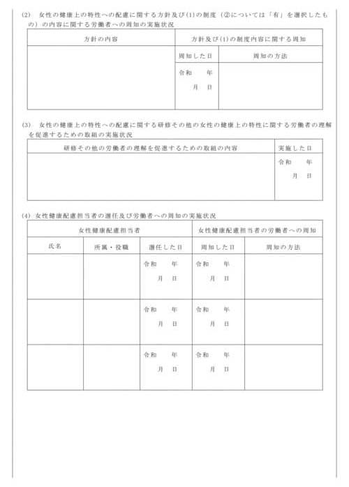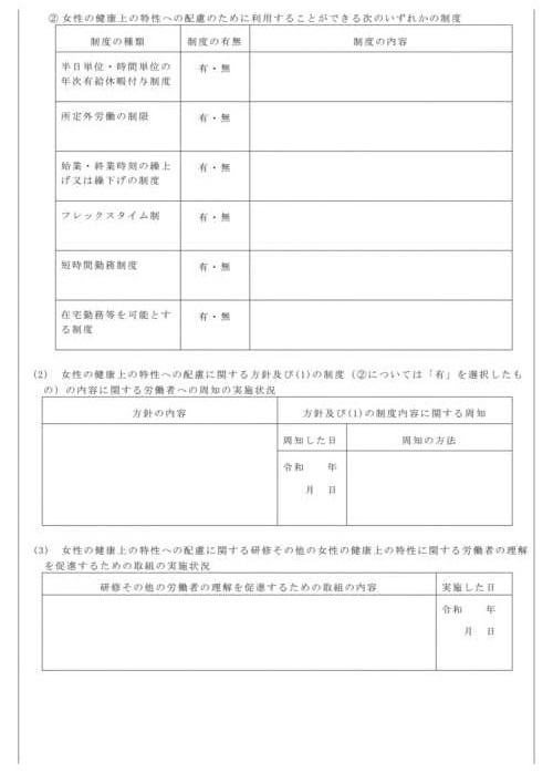 (2) 女性の健康上の特性への配慮に関する方針を示し、(1)に掲げる制度の内容とともに労働者に周知させるための措置を講じていること。 |