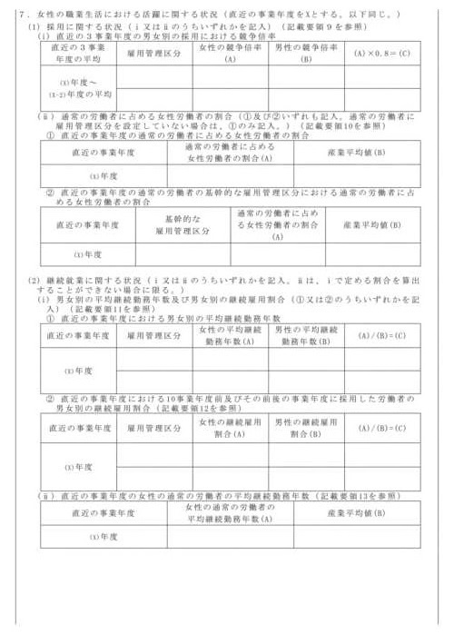 一 その雇用し、又は雇用しようとする女性労働者に対する職業生活に関する機会の提供に関する実績 |