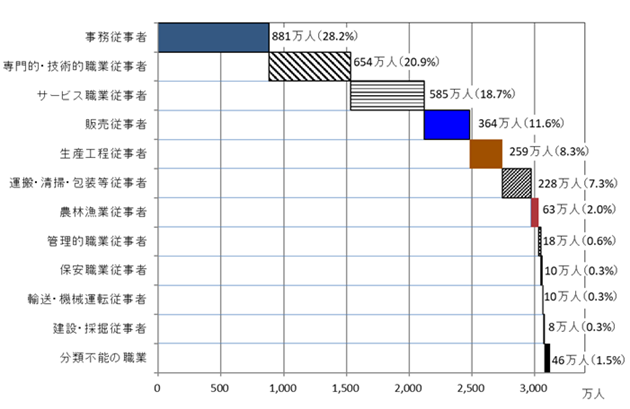 - ( )内の数字は、就業者総数に占める各職業の就業者数の割合。