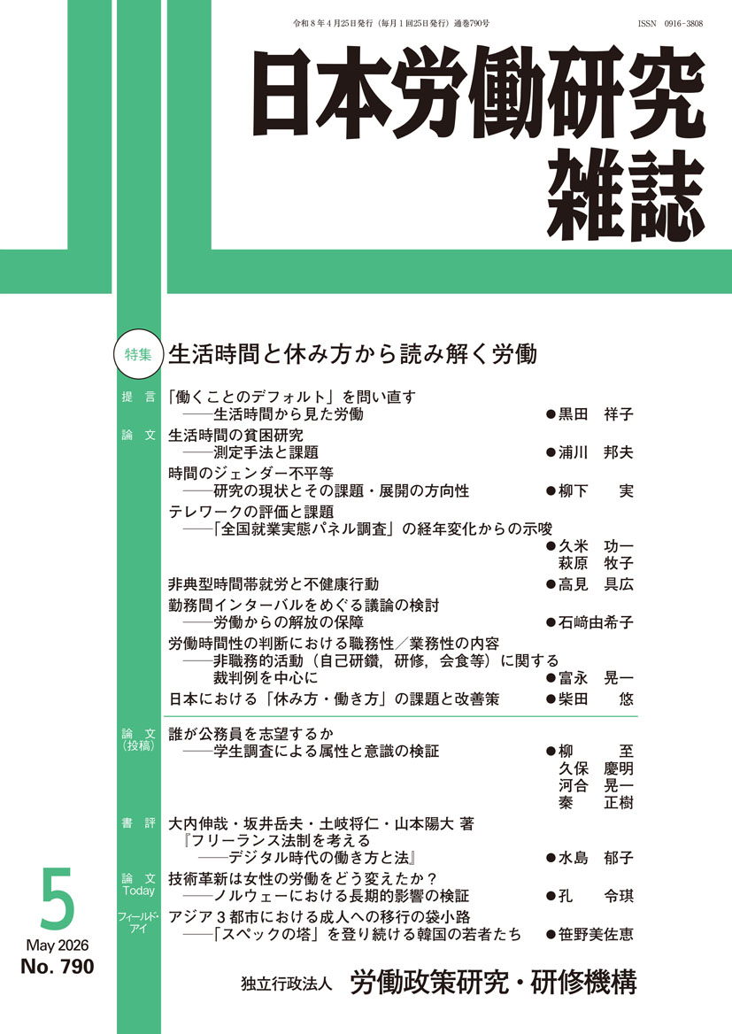 | 4月27日 | 日本労働研究雑誌 2026年5月号 生活時間と休み方から読み解く労働 |